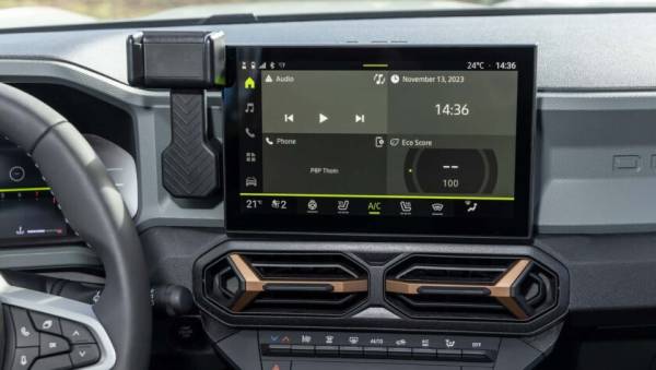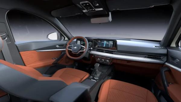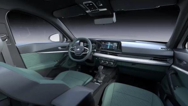 Салон решен в современном стиле, на передней панели два модных нынче горизонтальных дисплея приборной панели и мультимедийной системы, без козырька, но утопленных в торпедо. Причем такая конфигурация будет даже у базовых комплектаций.